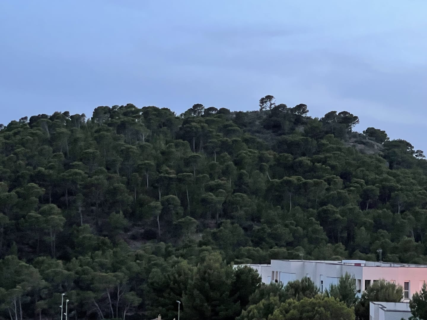 Blick vom Balkon auf den gegenüberliegenden Hügel.