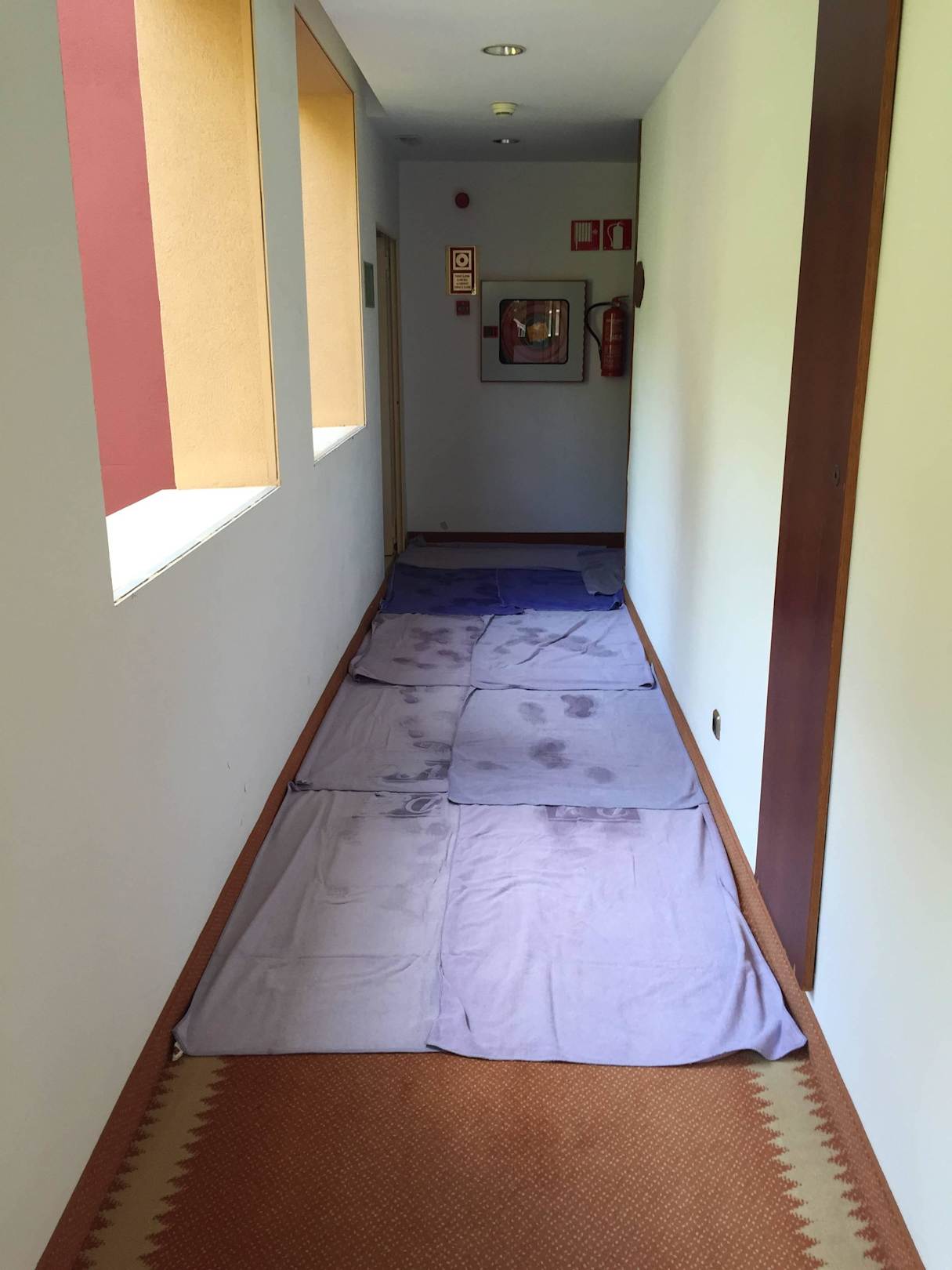 Gang zu den Zimmern nach einem Regen