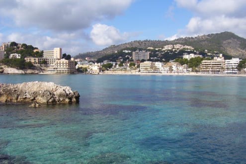 StrandDas DON ANTONIO sieht man im Hang oben etwas rechts vom größeren Strandhotel links im Bild