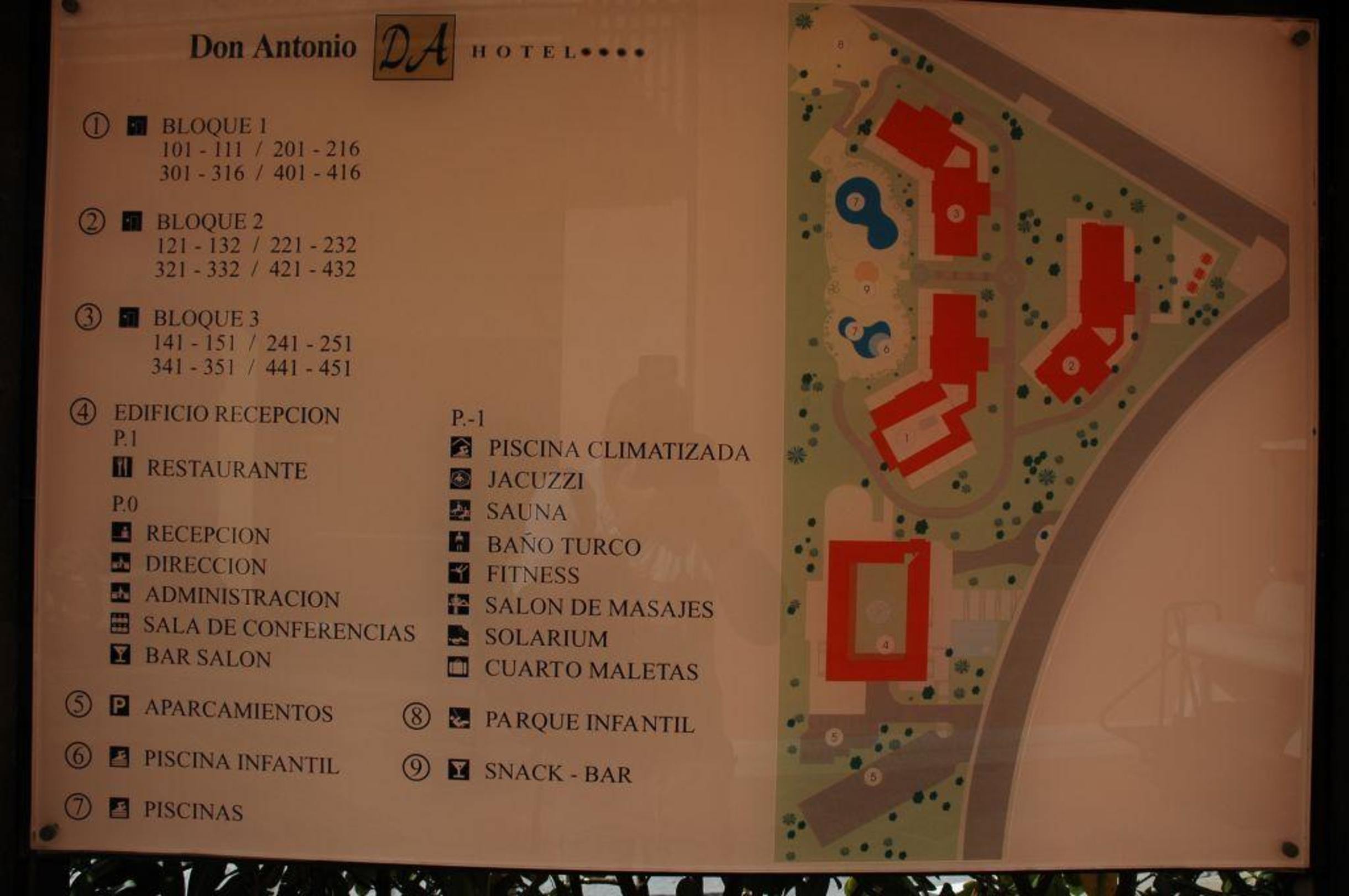 Hotel Lageplan Das Hotel besteht aus vier Gebäuden, drei für die Zimmer und eins für die Rezeption, Restaurant und Bar.