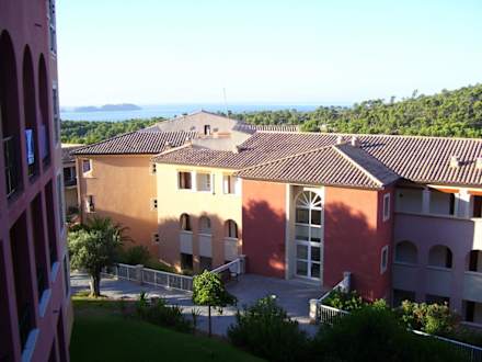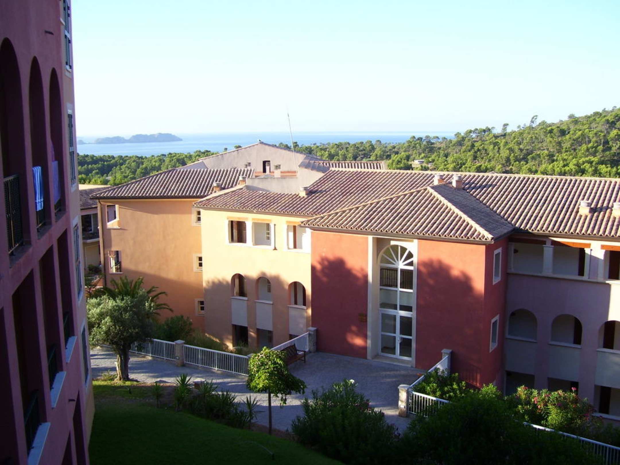 Blick vom Balkon hinüber zur Bucht von Cala Fornells