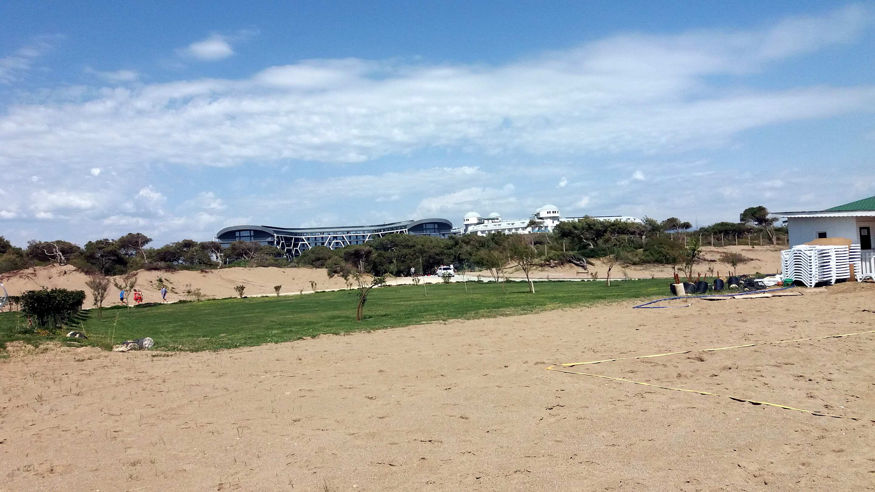 Strand mit Blick auf das Hotel