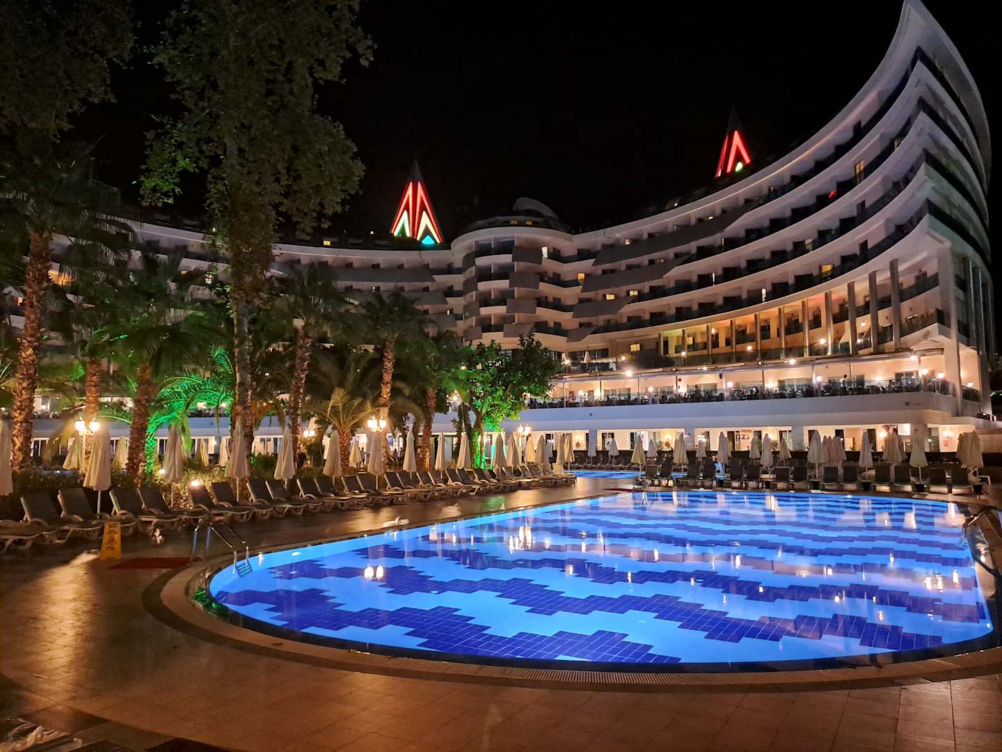 Blick von einem der Pools auf das Hauptgebäude