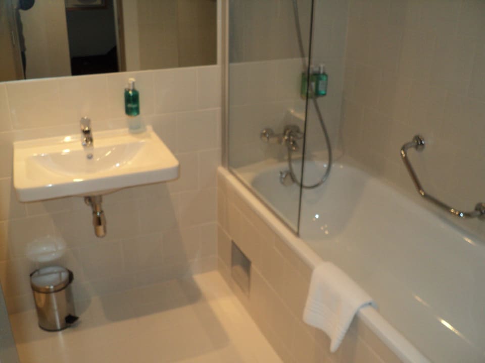 Das Badzimmer ist geräumigEinladung zum Energiesparen ist aufgestellt aber Stangen zum Handtuch trocknen fehlen. Platz dafür wäre vorhanden.