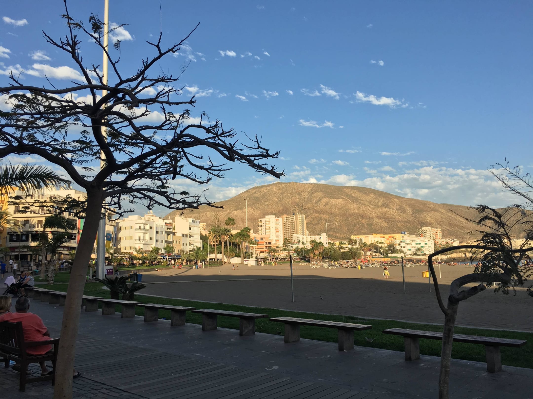 Der Sandstrand ist etwa 500m entfernt. Von hier aus ist das Hotel nicht direkt zu erkennen, aber hinter dem rechten weissen Gebäude steht es.
