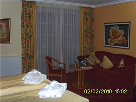 ZimmerHotel Rosenburg, Zimmer 1 - Blick auf Sofa und Balkonfenster