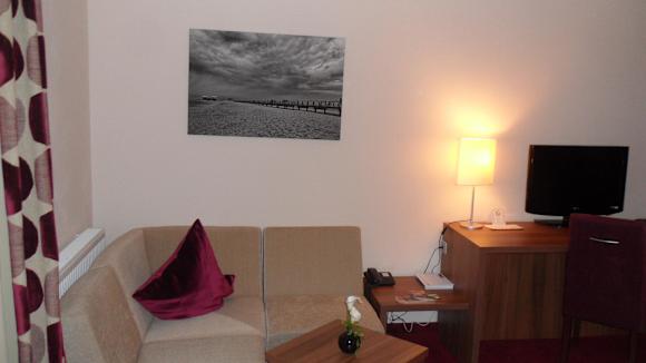 Hotel Rosenburg - Zimmer 30Sitzeckenbereich - rechts Schreibtisch mit Flachbild-TV