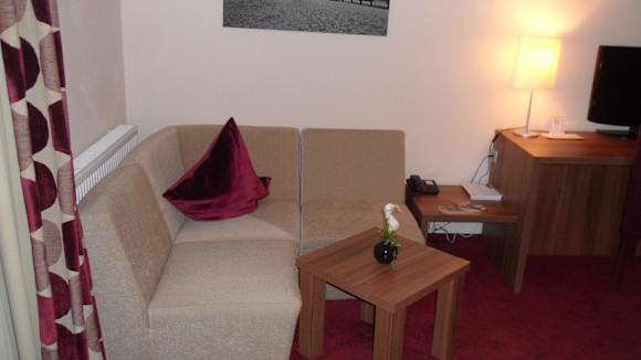 Hotel Rosenburg - Zimmer 30Sitzeckenbereich - rechts Schreibtisch mit Flachbild-TV