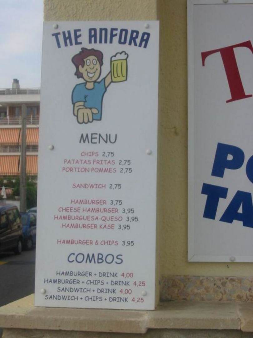 Speisekarte der Bar