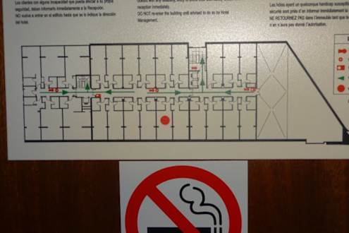 ZimmerZimmer 511 Lageplan: roter Punkt. Meerblick und Richtung Campinplatz: unten. Eingnag und zum Meer rechts bei der schrägen Seite