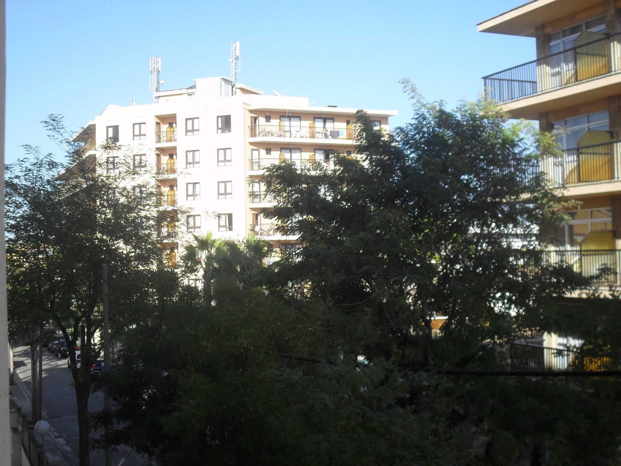 Das war der Außblick vom Balkon.Wenn man ein Zimmer nach vorne hat sieht man nicht so viel nur das hotel gegenüber und die Straße ,aber nach hinten raus geht es ,kostet dann aber auch gleich für 2wochen zwischen 100 und 120 Euro mehr und so viel größer sind die zimmer auch nicht .