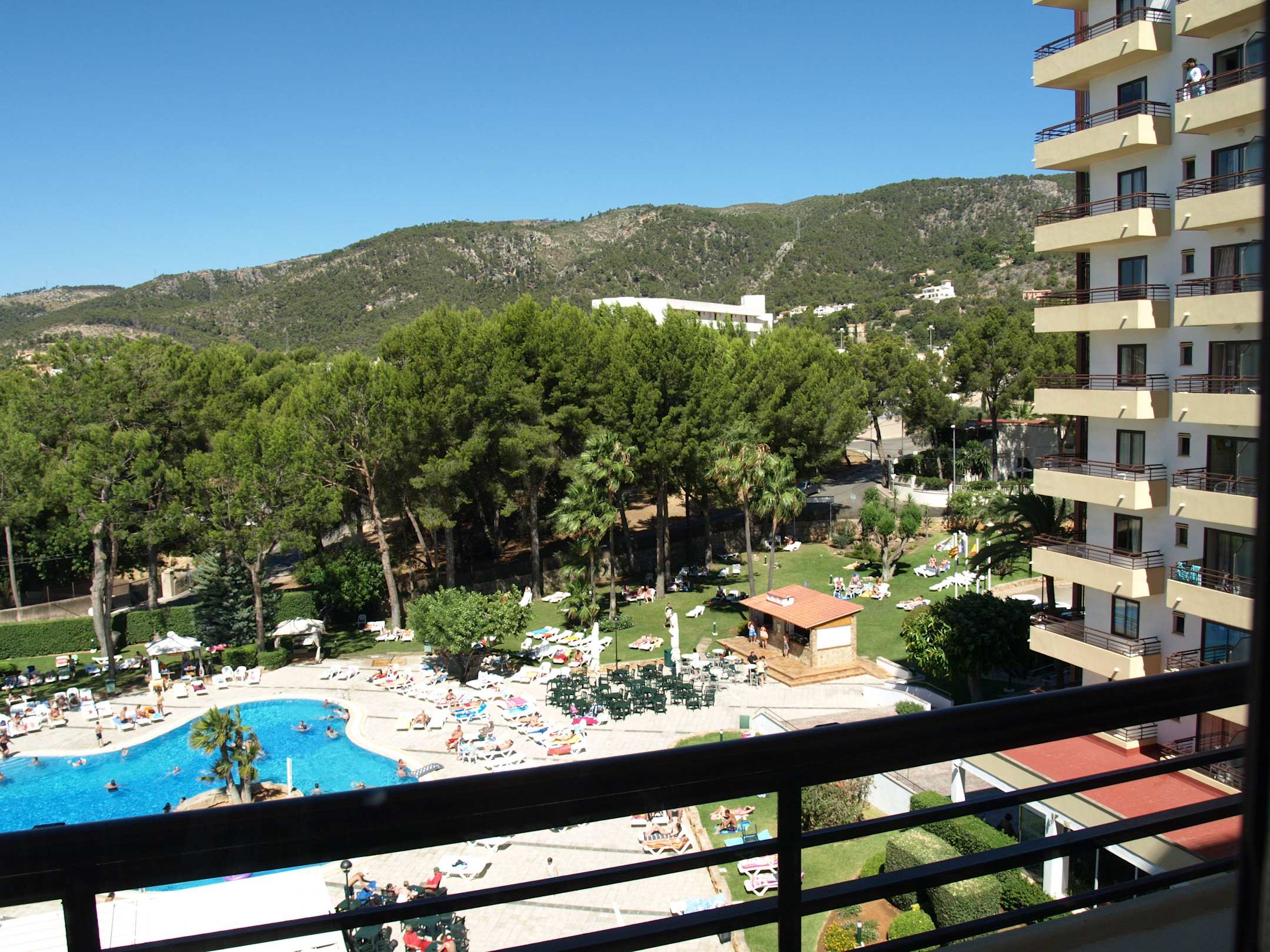 Poolanlage mit Flügel des Hotels