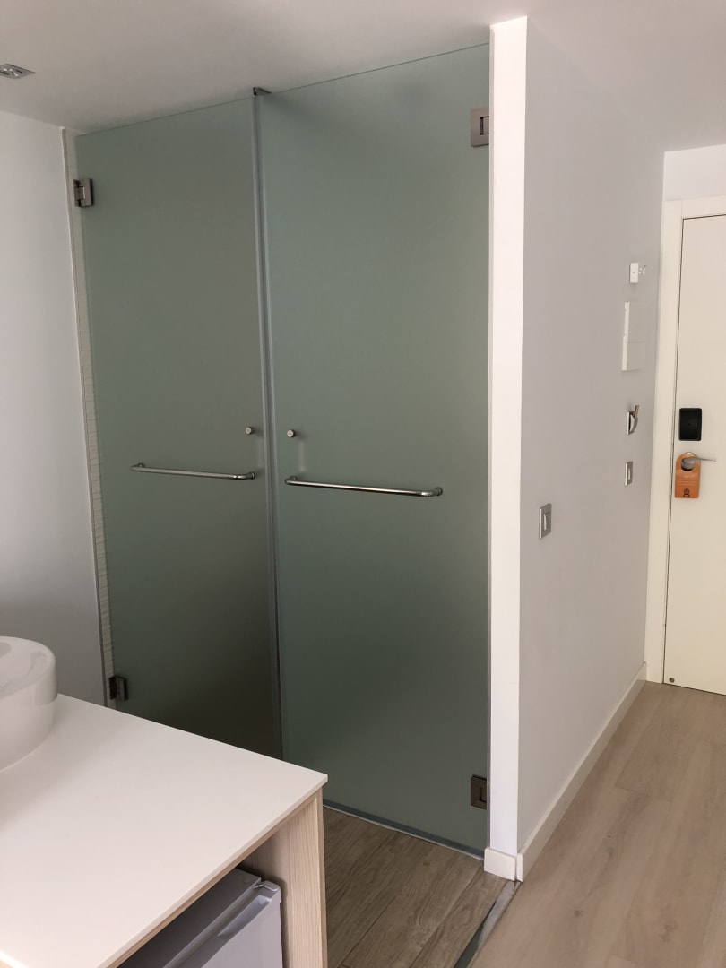 Links Toilette, rechts Dusche