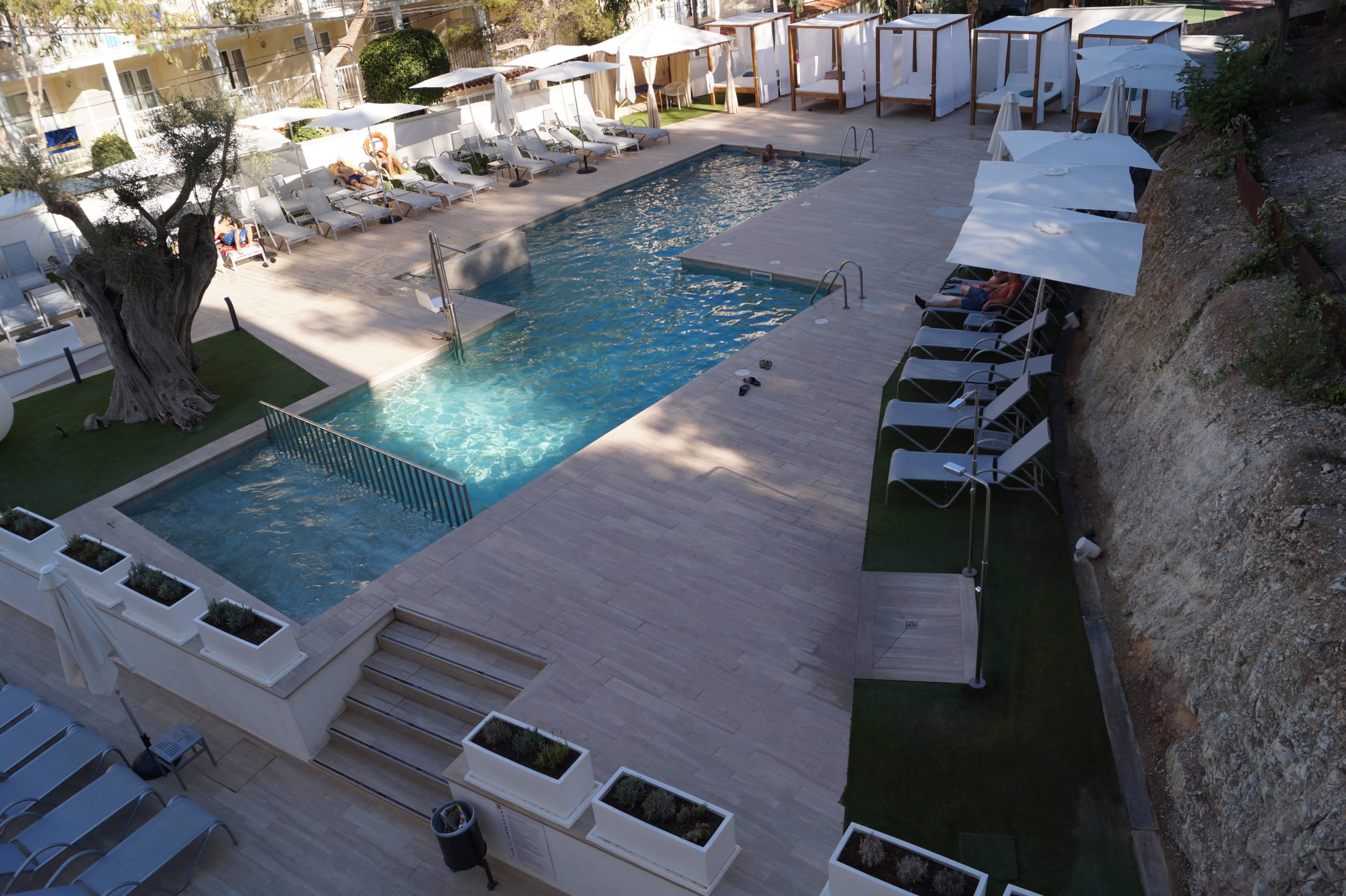 Blick vom Zimmer auf den Pool