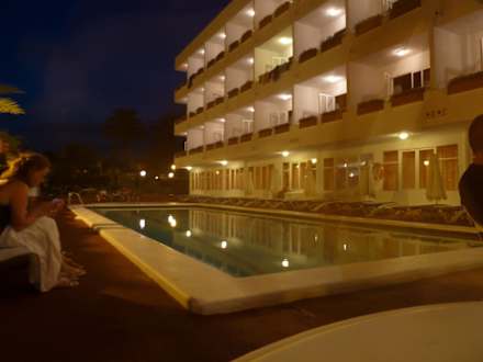 Poolbereich am Abend