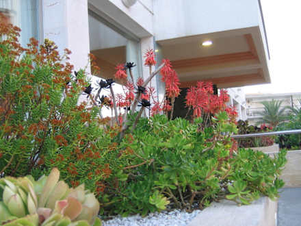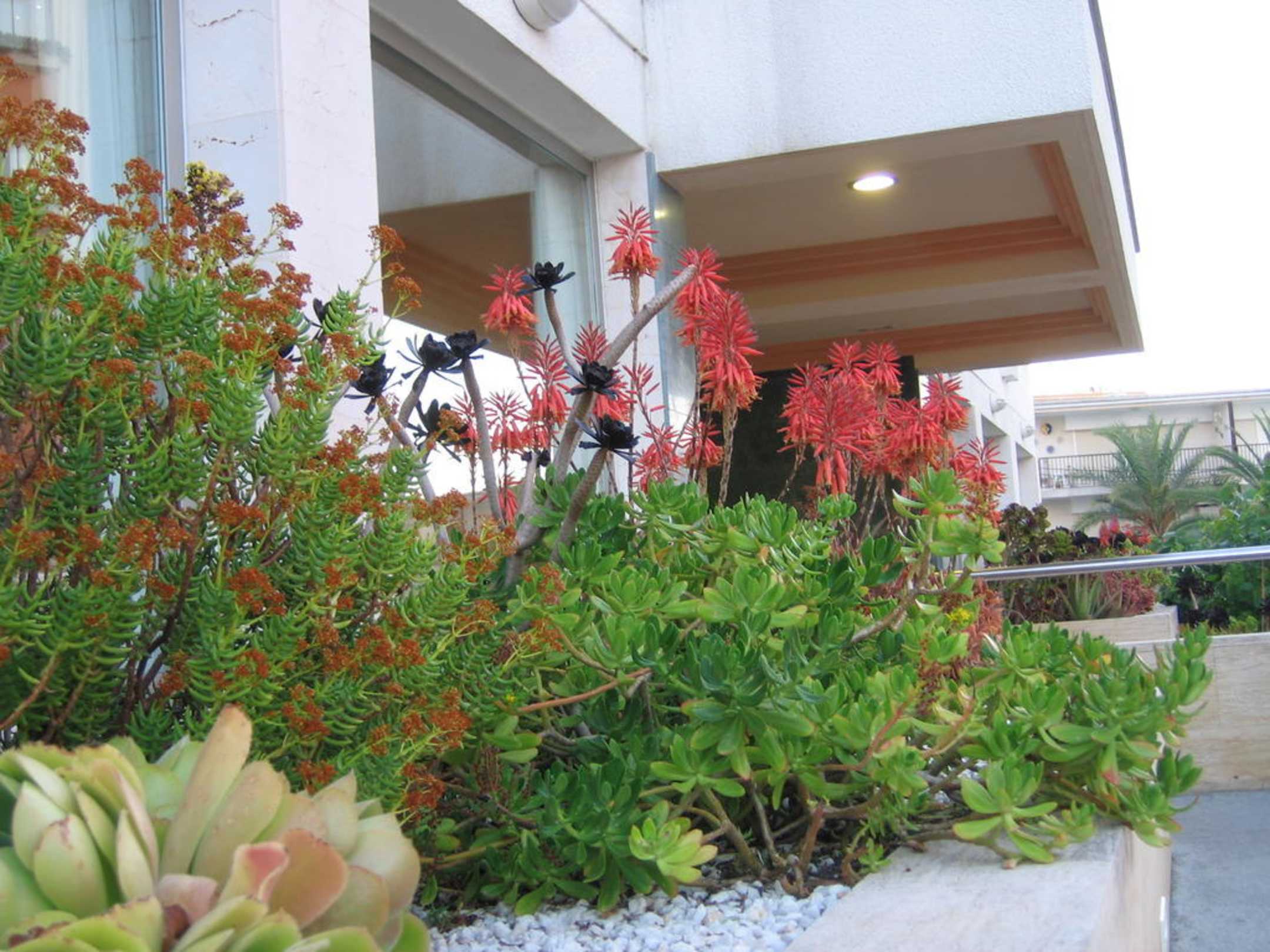 Kakteenrabatten vor dem Eingang