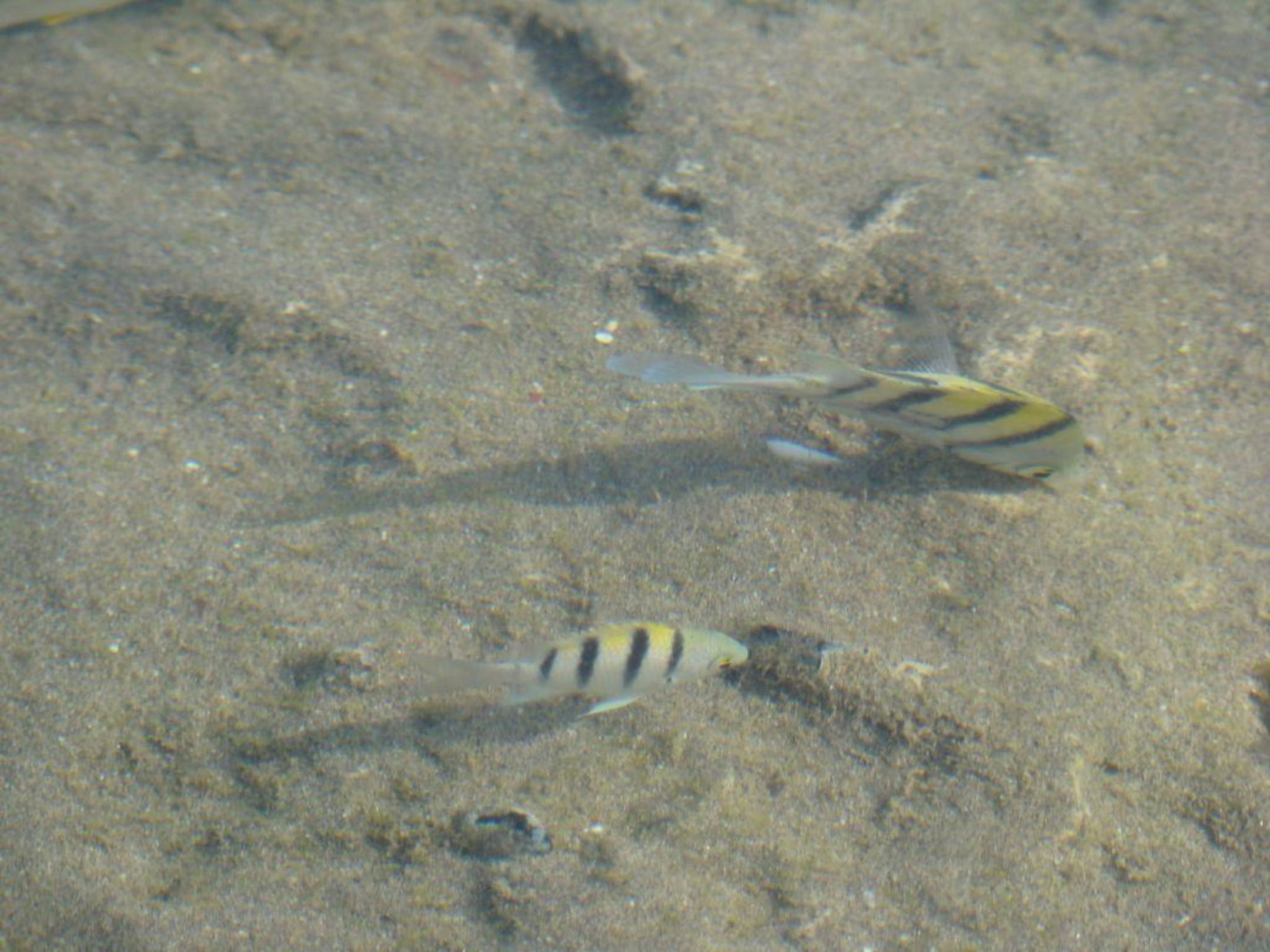 Fische beim StrandspaziergangMan muss noch nicht einmal schnorcheln gehen um solche Bilder zu machen. Beim Spaziergang am Strand geht das auch.