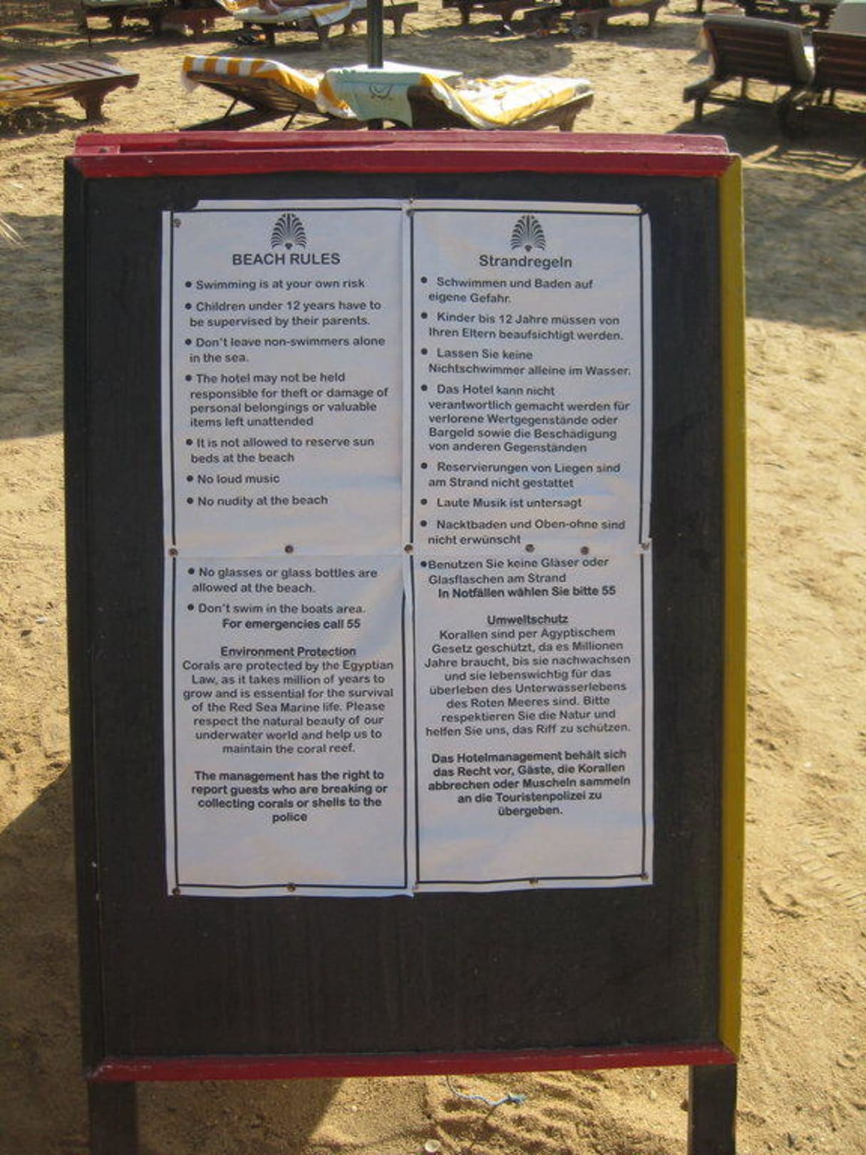 Deutsche Hinweistafel am Strand - Strandregeln - Umweltschutz