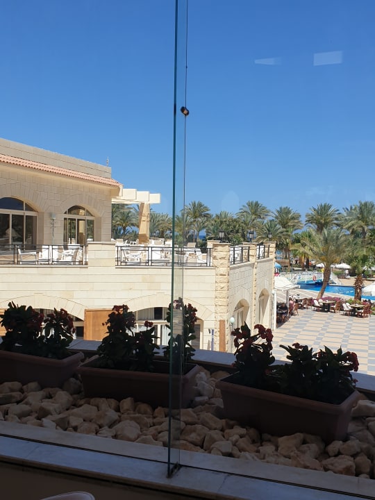 Ausblick von der Lobby zum Pool und Bar