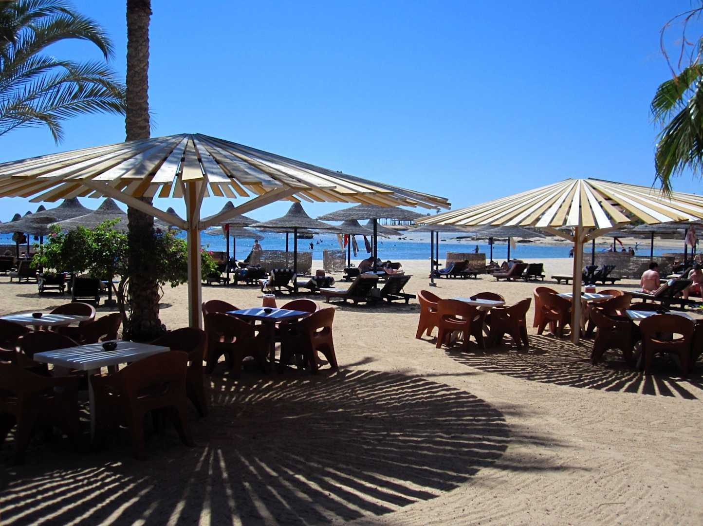 Vorn, an der Strandbar