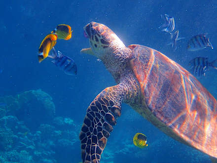 Schildkröte beim Quallenfressen