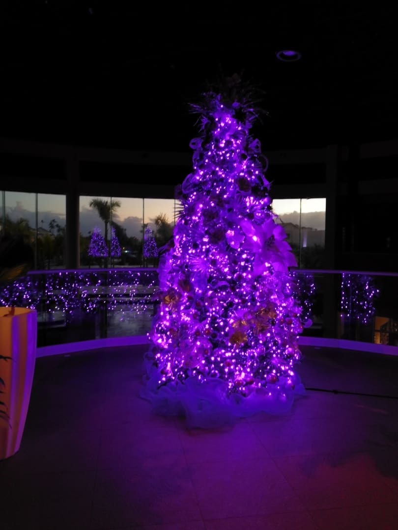 Weihnachtsbaum am Morgen in der Lobby