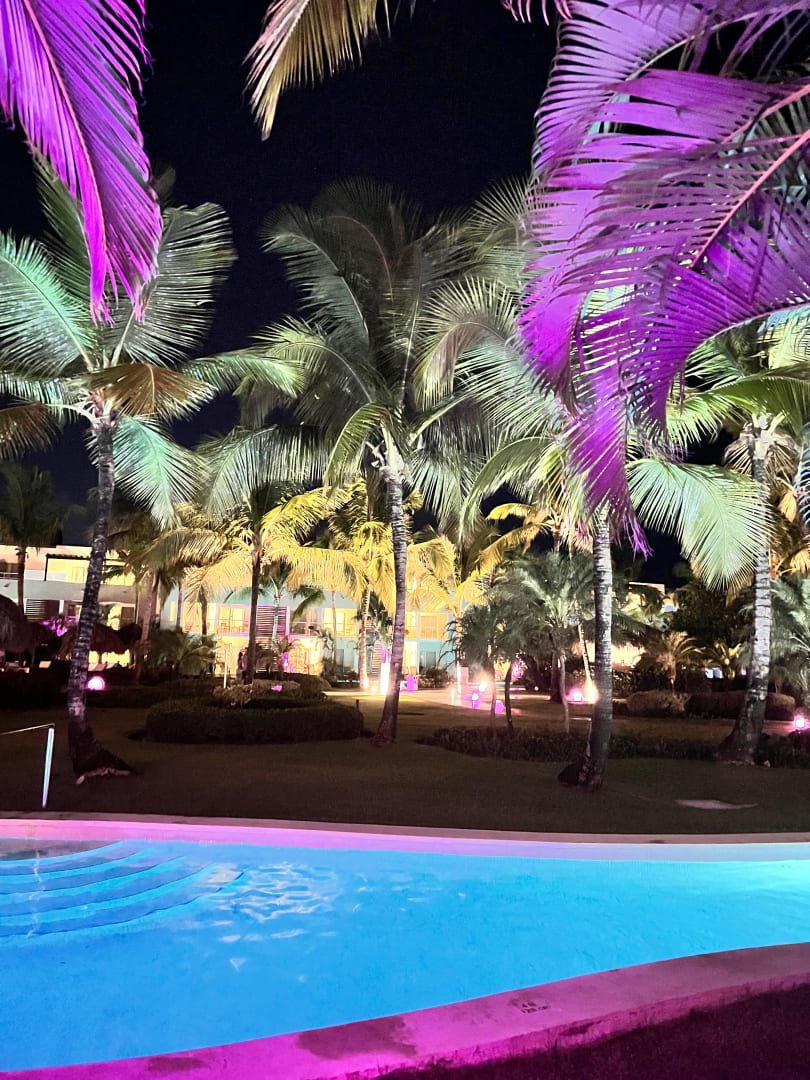 Swim up Pool vor unserer Terrasse bei Nacht