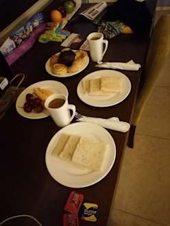 Am Morgen unseres Ausflugs haben wir uns unser Frühstück auf das Zimmer bestellt - pünktlich um 06:00 Uhr wurde es uns gebracht (obwohl man eigentlich erst ab 06:00 Uhr überhaupt Frühstück bestellen konnte).