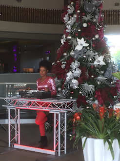 Es war Dezember und DJane begrüßte die neuen Gäste unter dem Weihnachtsbaum