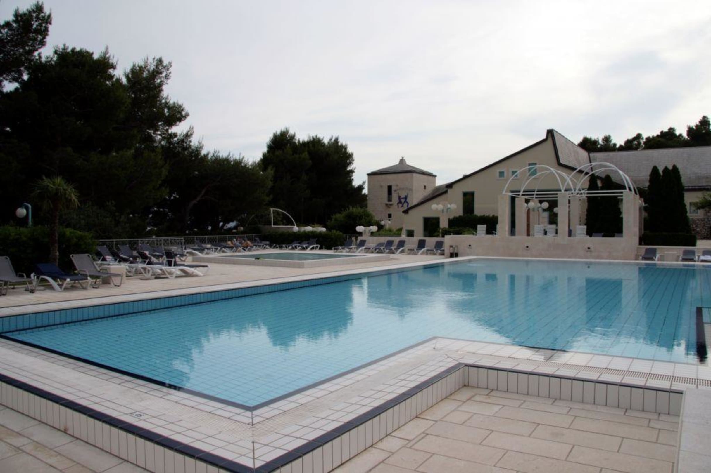 großer gepflegter Hauptpool mit ausreichend Liegen und angrenzender Poolbar