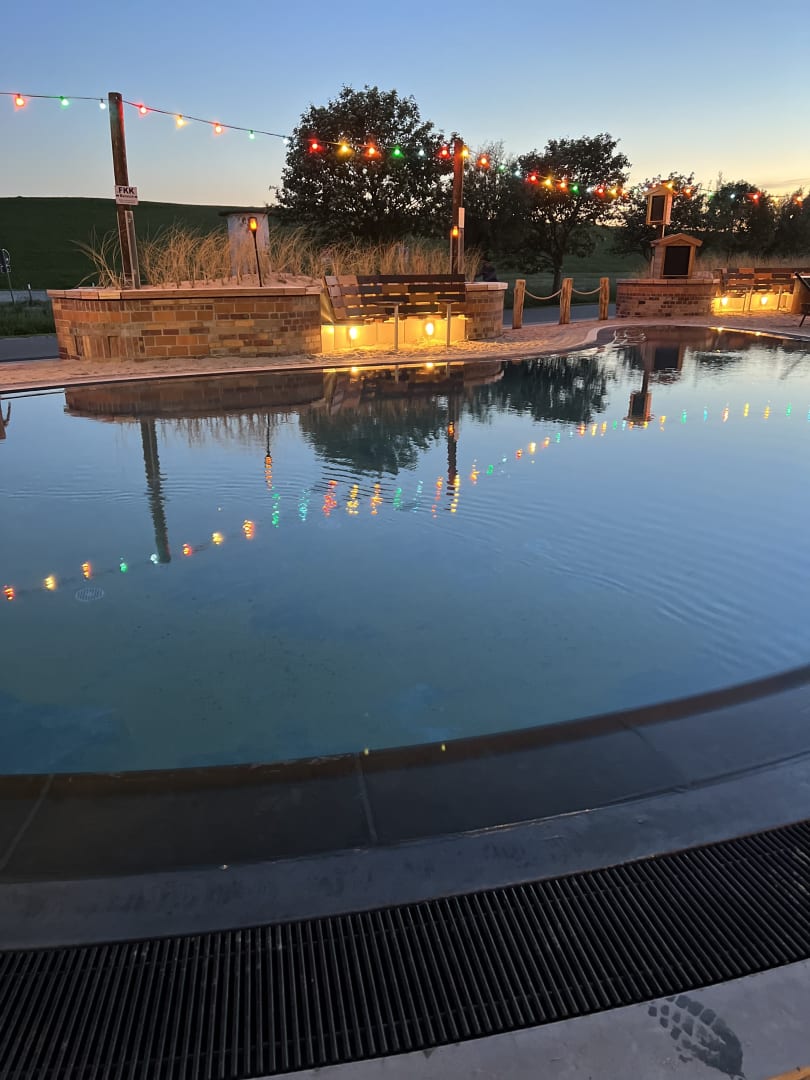 Poolanlage mit Blick auf den Deich.