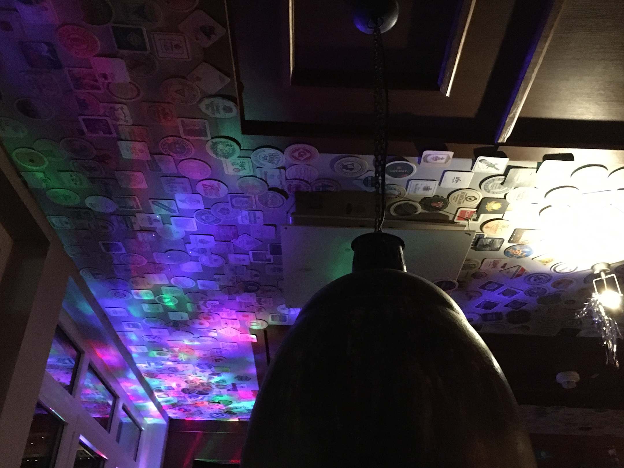 Bar , Decke mit Bierdeckeln