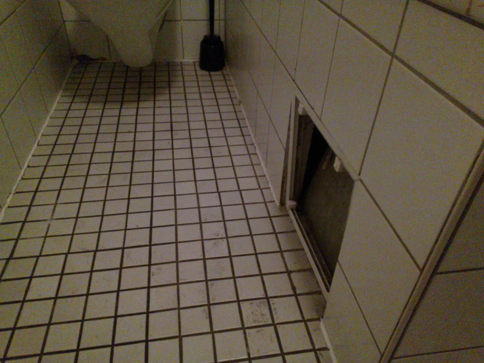 Versifftes und dreckiges Bad mit offener Kachel