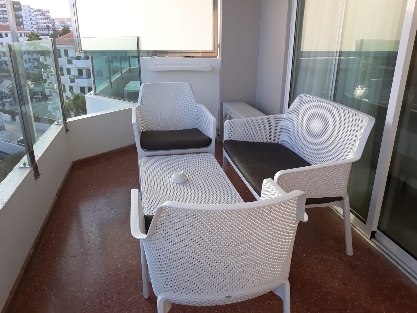 Großer Balkon mit schönen Sitzmöbeln