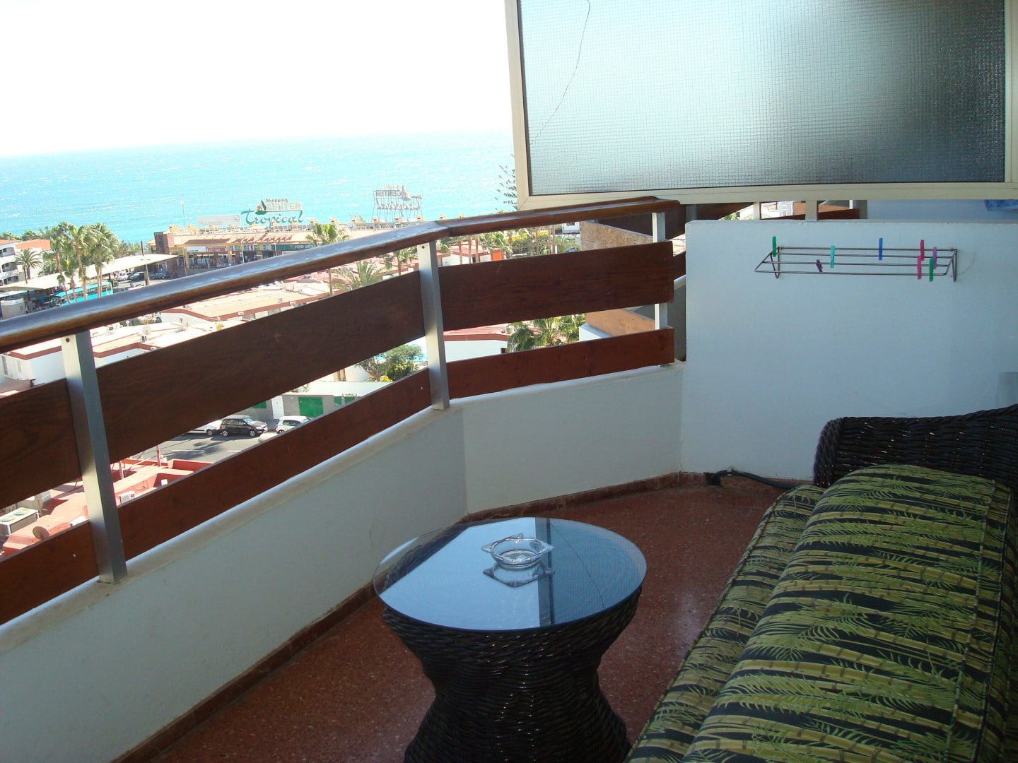 Der Blick vom Balkon nach rechts, im Hintergrund das Meer. Wir wohnten im 8. Stock.