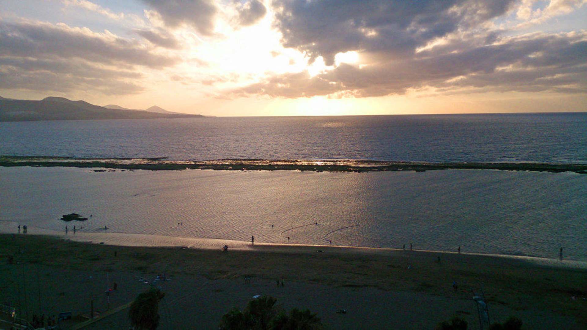 Strand, Meer mit je nach Ebbe/Flut sichtbarem Riff