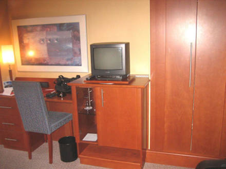 Minibar und einer der beiden Kleiderschränke