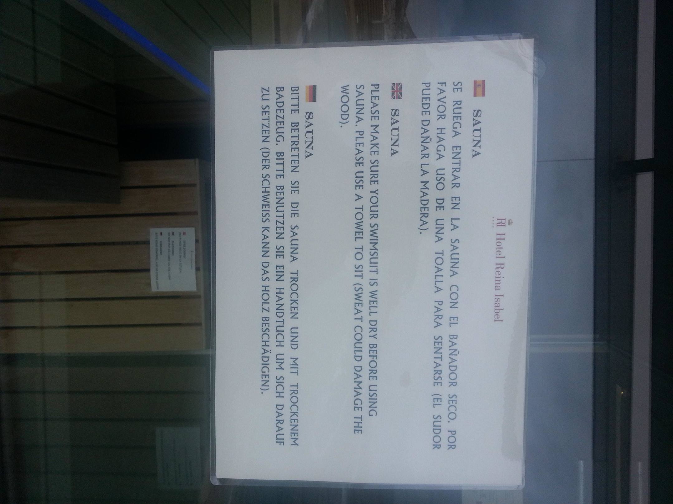 Das sind die Regeln für die Saunabenutzung. Hier war auch fast nie was los.