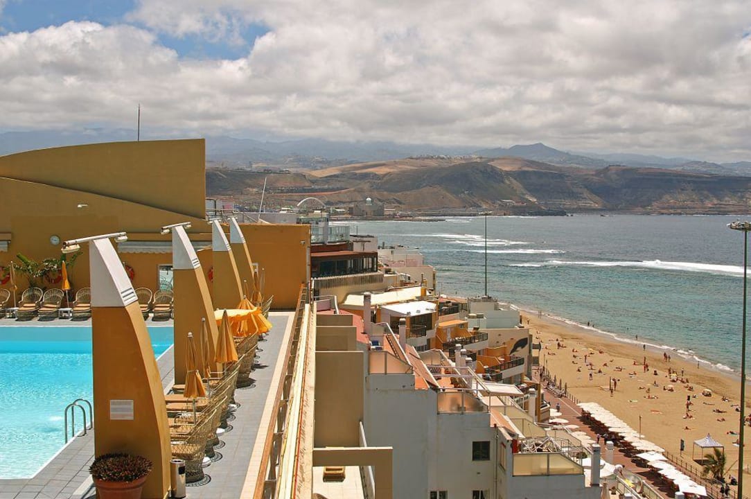 Aussicht von der Dachpool-Terrasse auf den Las Canteras Sandstrand.