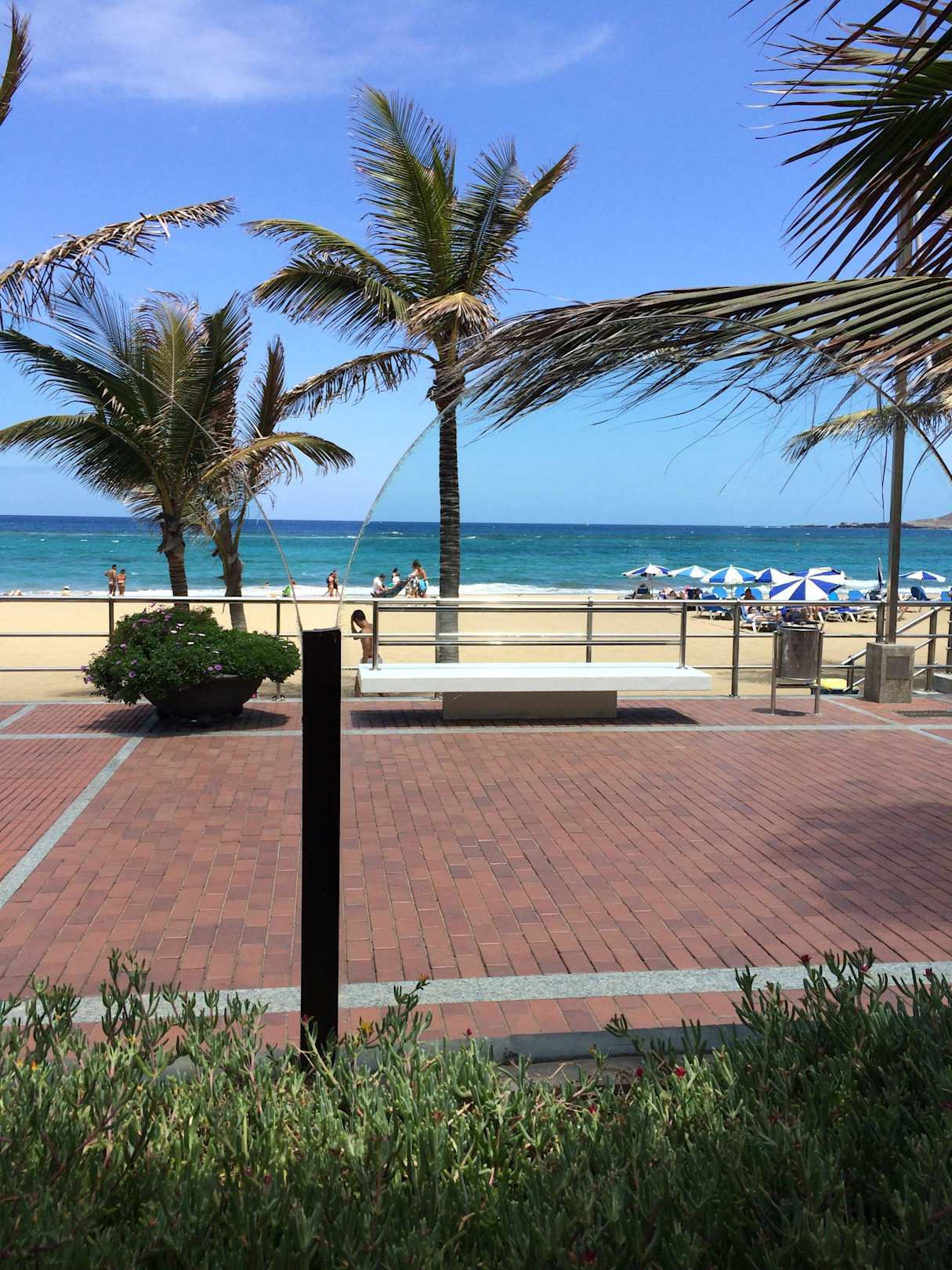 Im Hotel beim Mittagssnack mit Blick auf den Stran