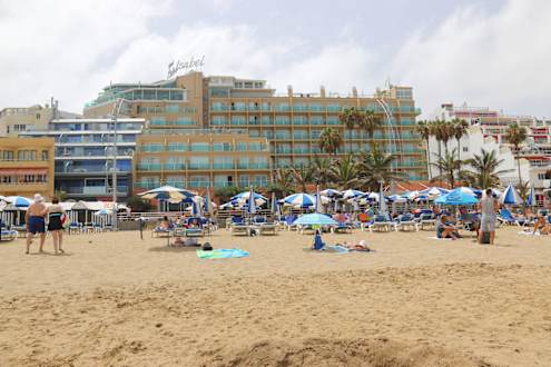 Außenansicht vom Strand auf das Hotel