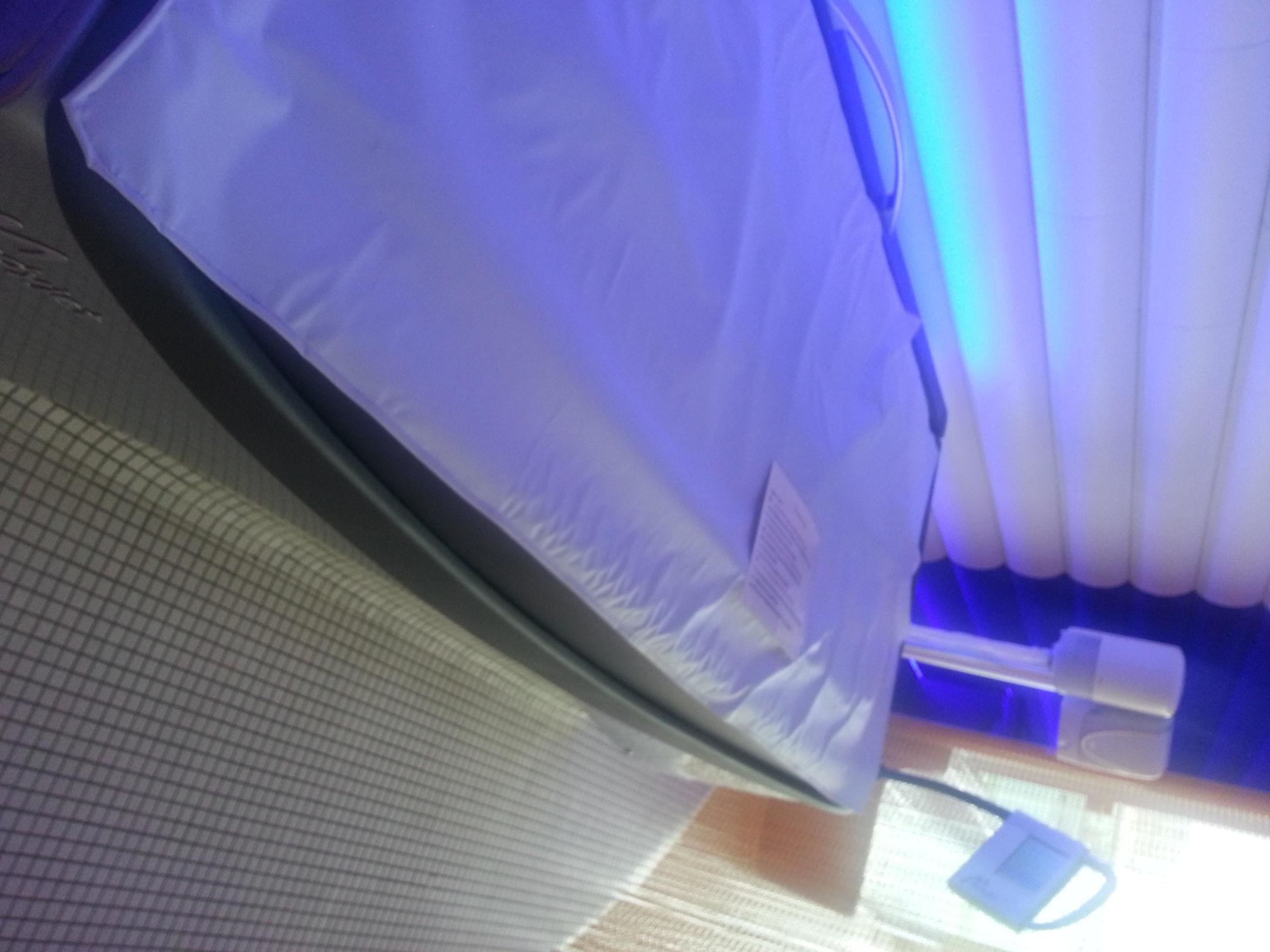 Hier konnte man sich an dem Teil am Kopfende den Massagevorgang einstellen und gratis benutzen. Leider nur mit trockenen Badesachen. Wenn man das allerdings erst nach dem Baden gelesen hatte, musste man verzichten.