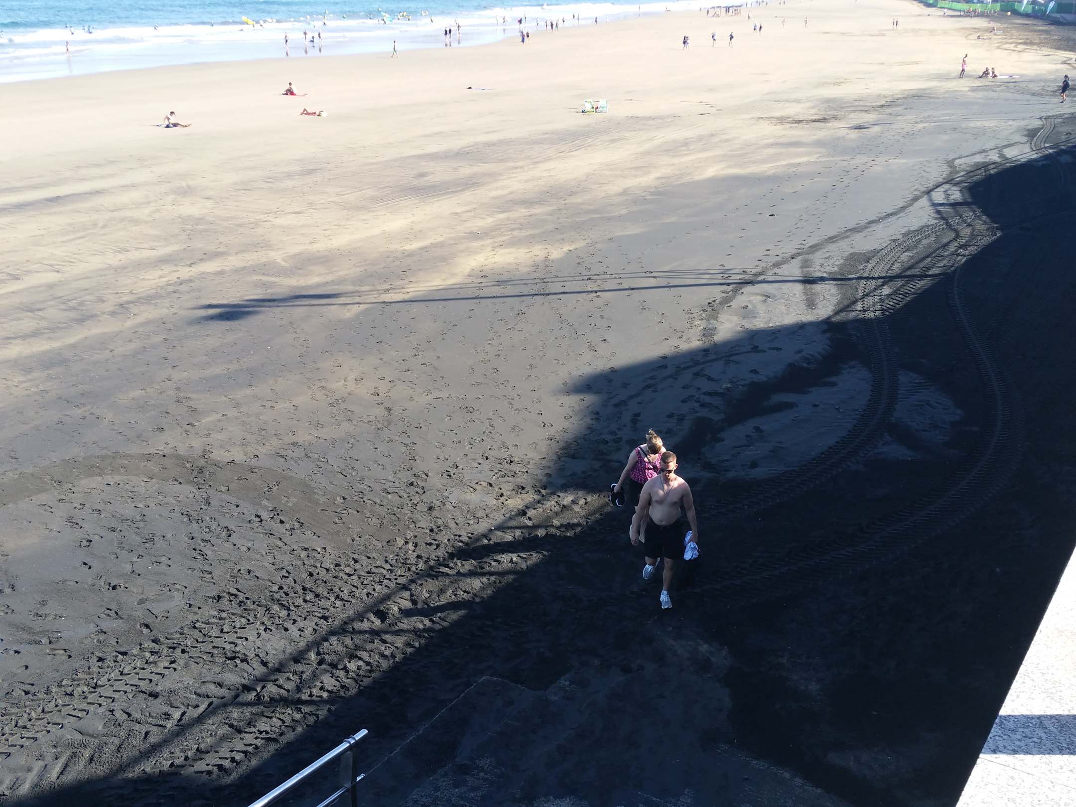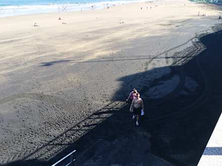Dunkler Sand am anderen Ende des Strandes