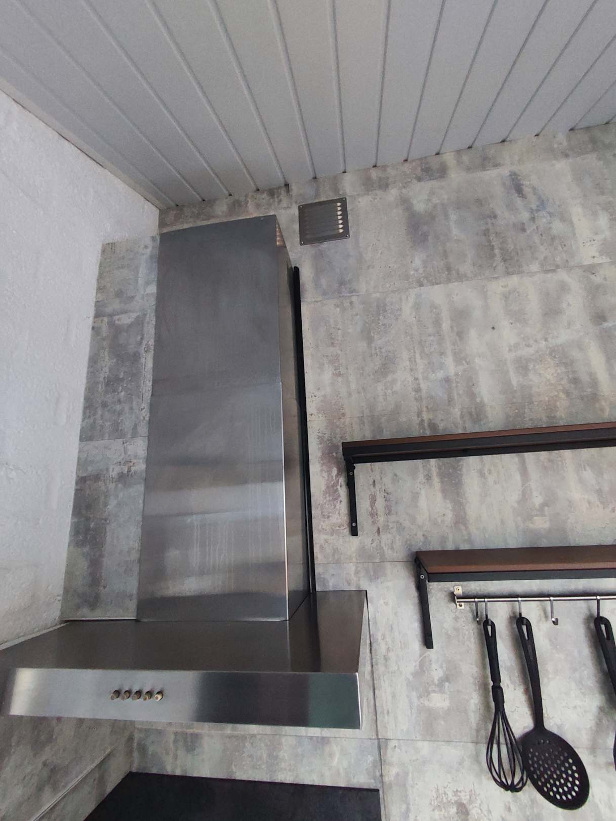 Küche mit Lüftung aus dem Bad