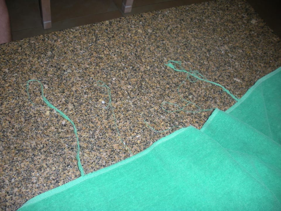 Ausgefranstes HandtuchDie Hand- und Badetücher sind sehr alt, ausgefranst und brüchig. Einfach nur eklig!
