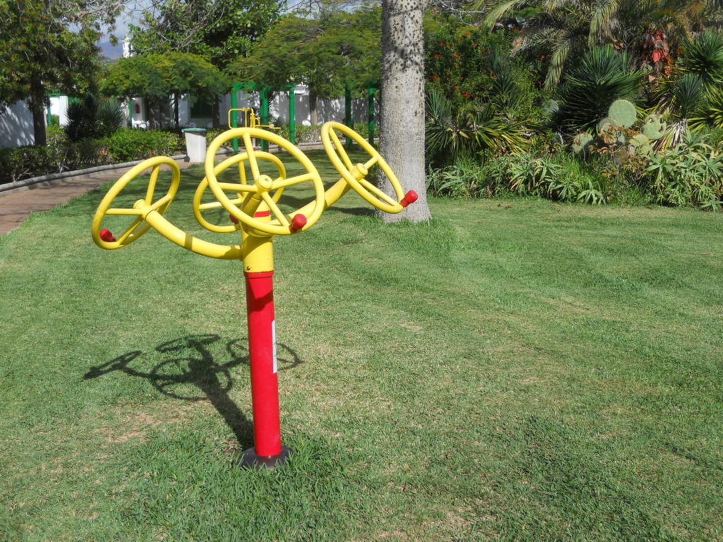 Fitness-GerätAuf der Wiese, zwischen Poolanlage und dem inneren Weg, stehen mehrere Fitness-Geräte.