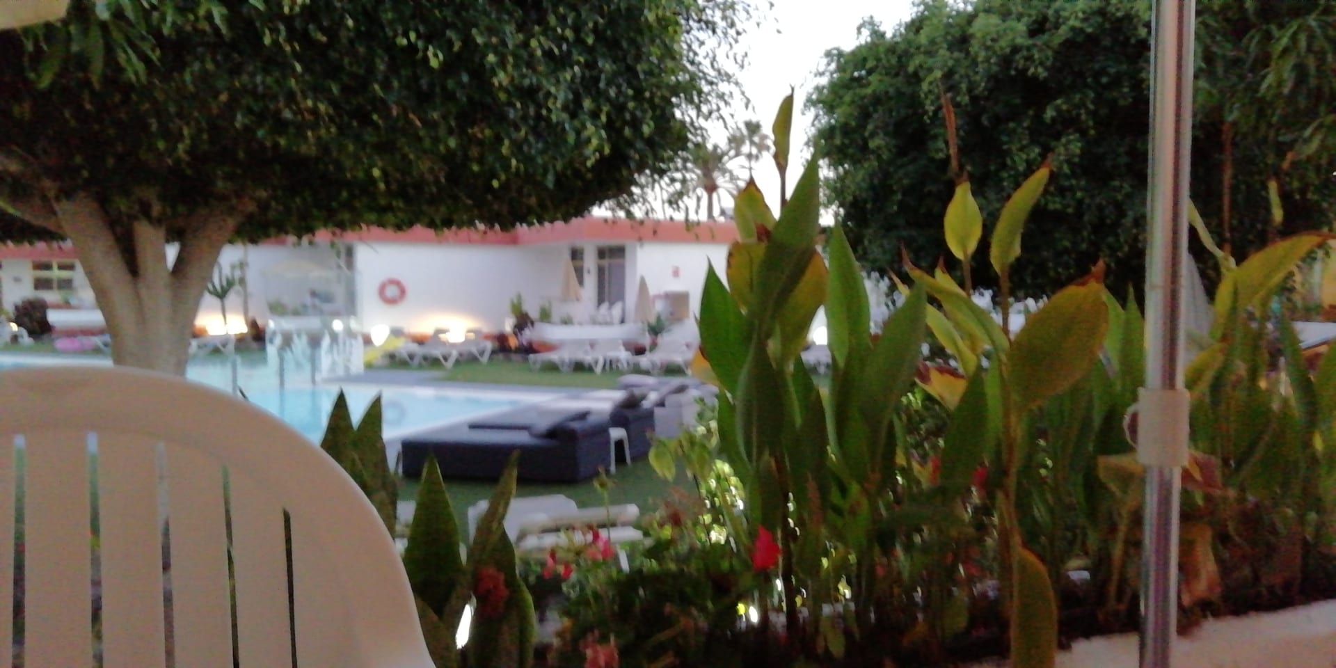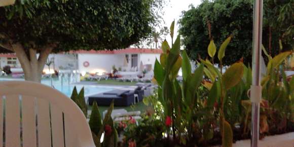 Blick von unserer Terrasse auf den Pool