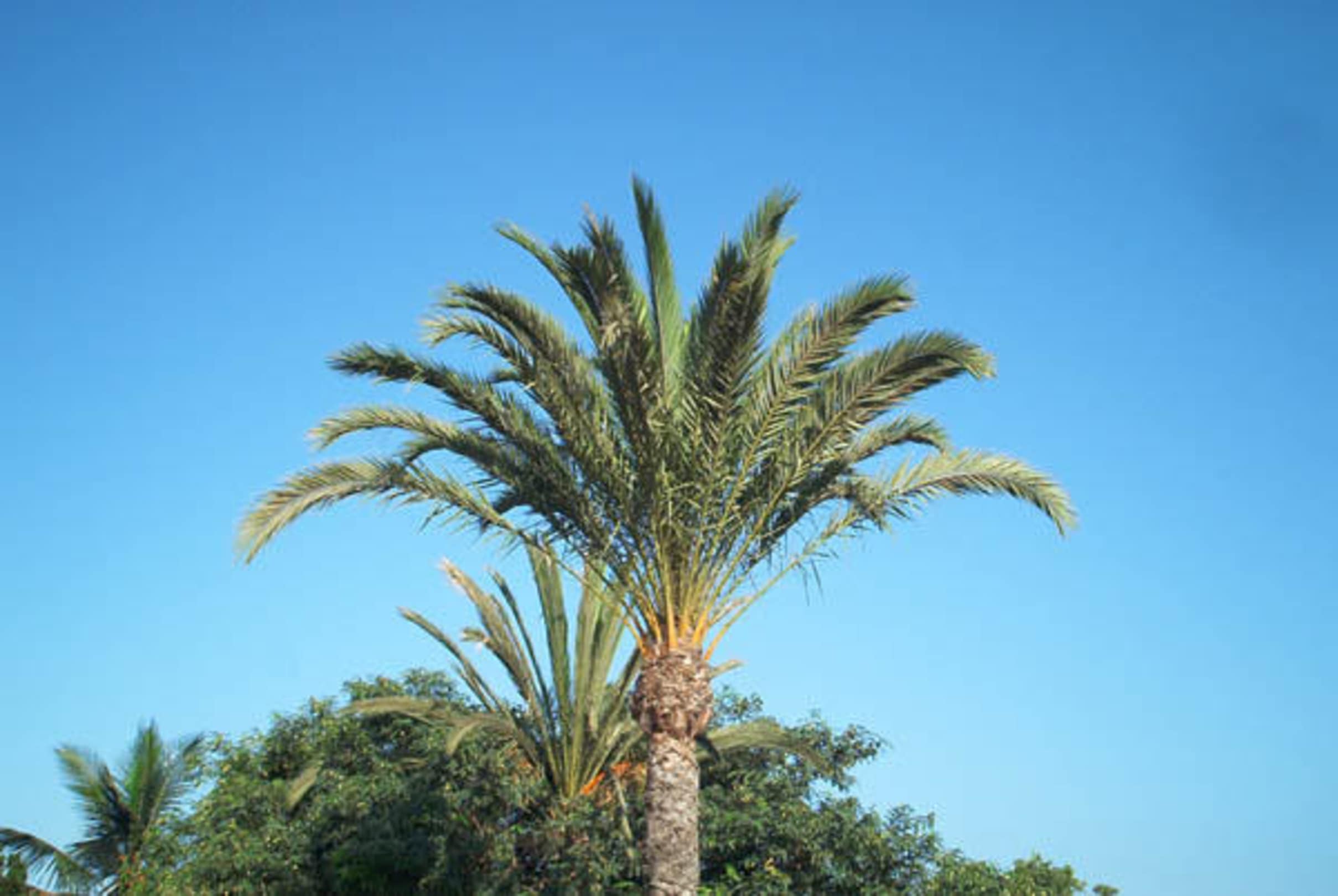 Urlaub auf Gran CanariaDas ist einfach nur ein wunderschönes Bild vom Balkon aus gemacht. eine Palme und dahinter ein schöner blauer Himmel.