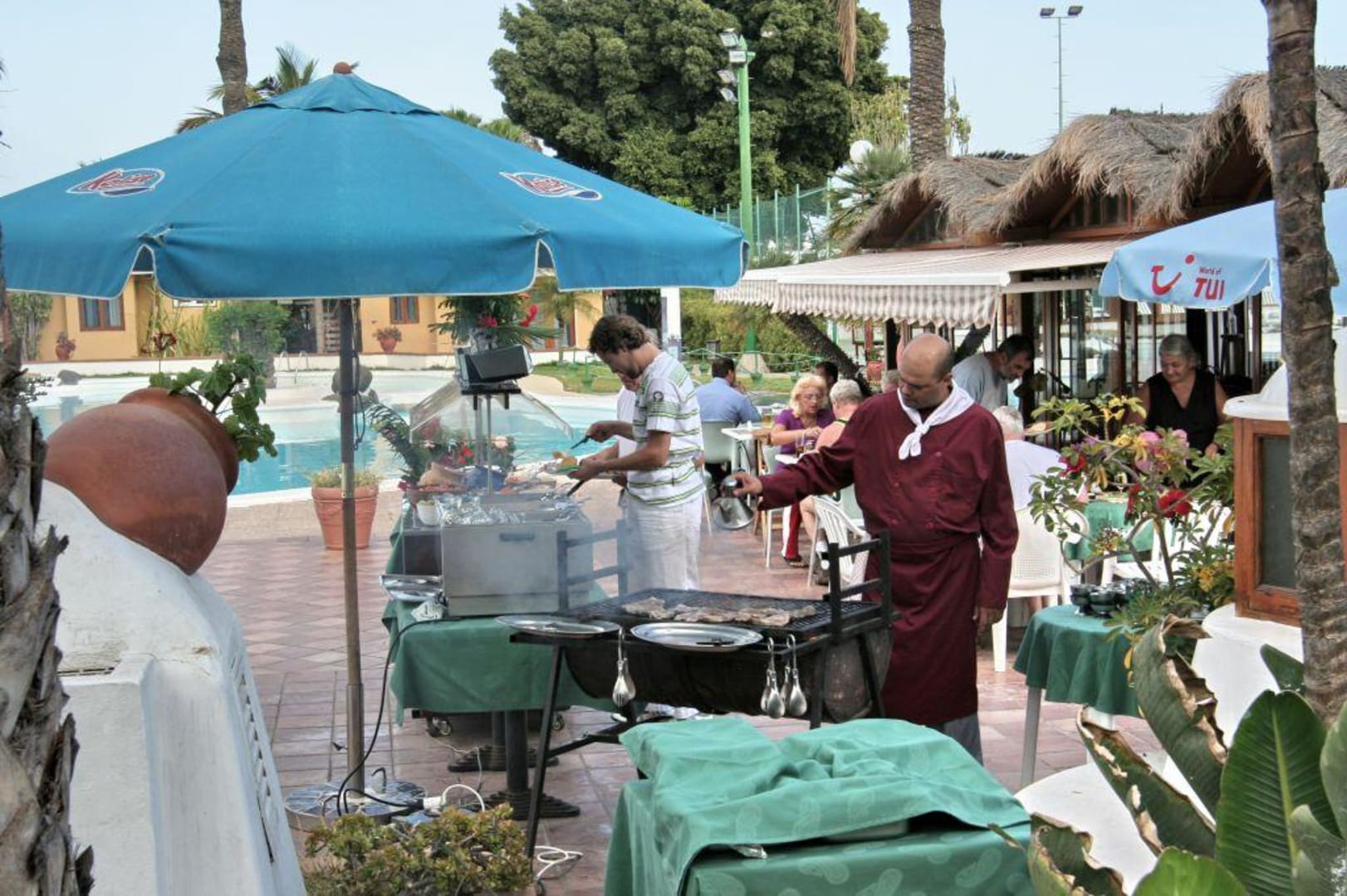Einmal pro Woche, meistens Samstag, begab sich der Chefkoch höchst persönlich an den Grill. Es gab frisch gegrillten Fisch, Schwein, Rind und Hühnchen. Dazu Salate und Grillkartoffeln.