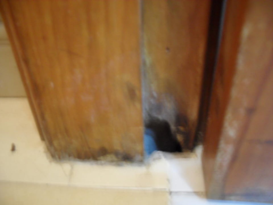 Im Türrahmen vom Badezimmer.